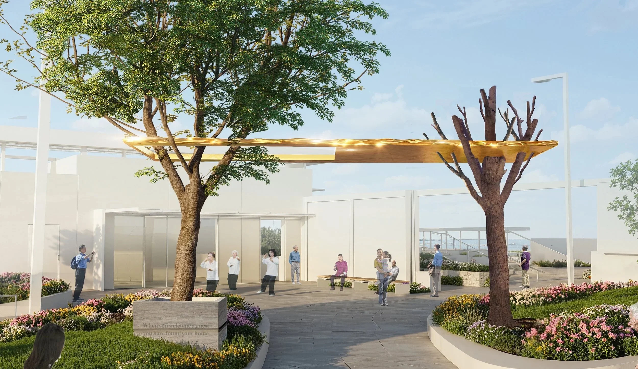 Living Room | Living Gate, Collaboration with Summer Mei Ling Lee. Proposed for Portsmouth Square Public Art Project, San Francisco Chinatown, 2025. Unrealized.